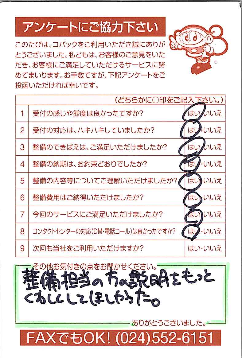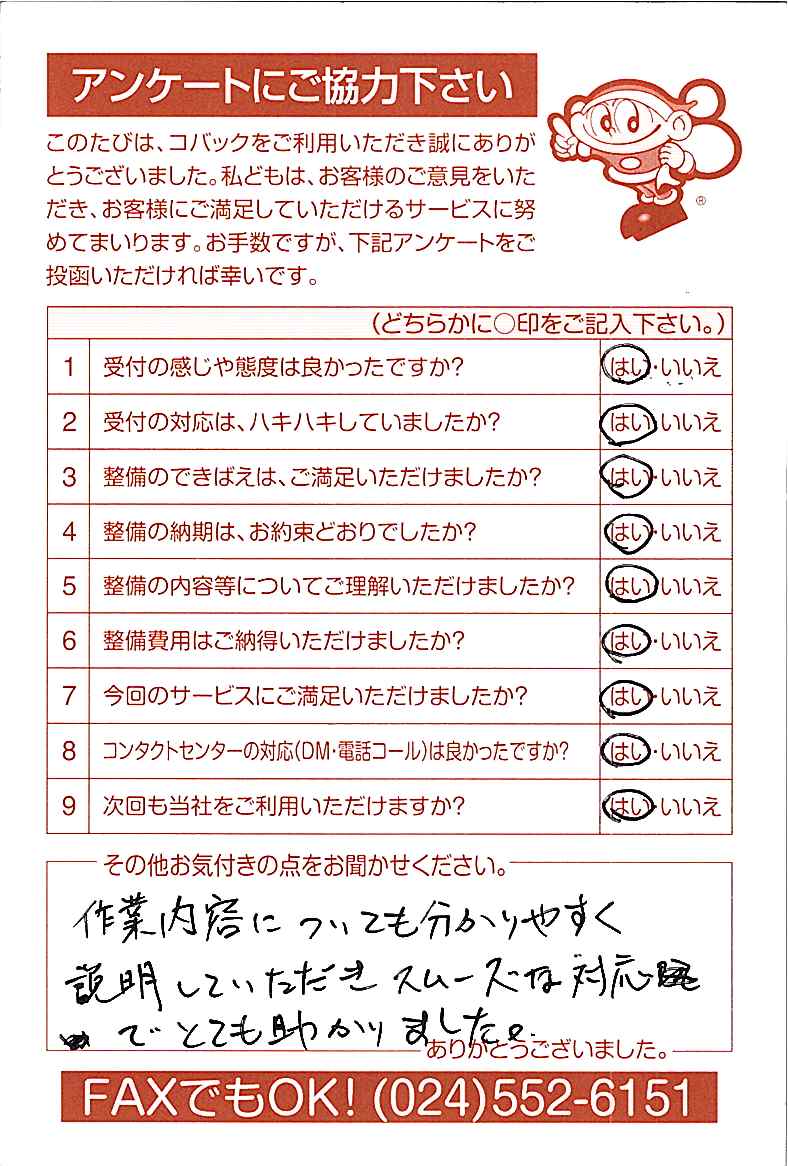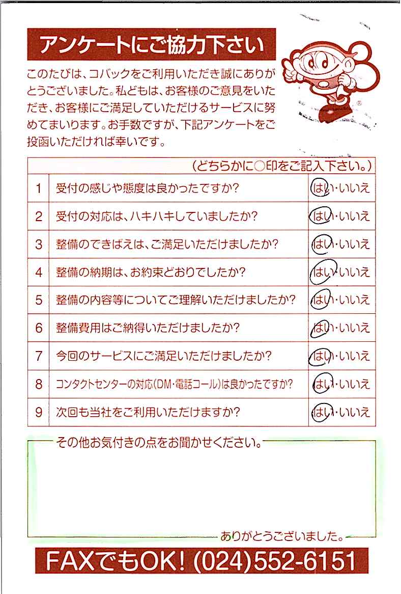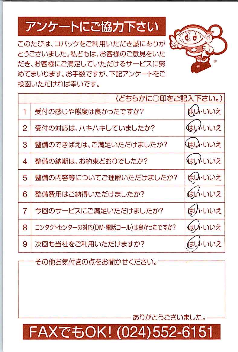 車検のコバック各店をご利用後には、ぜひアンケートのご協力をよろしくお願いいたします。