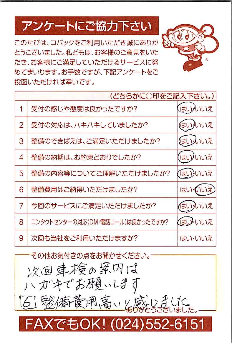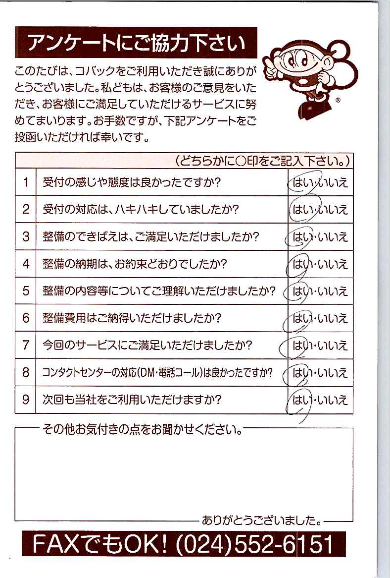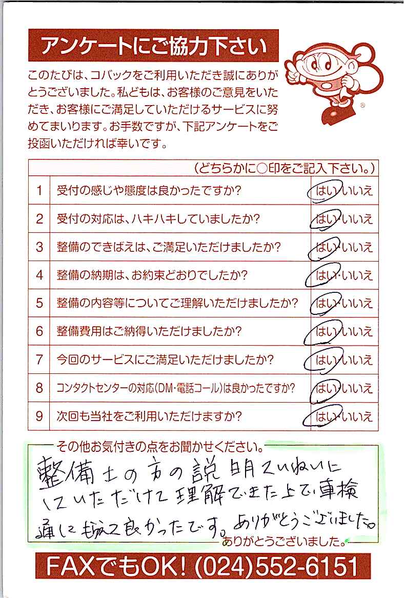 車検のコバック各店をご利用後には、ぜひアンケートのご協力をよろしくお願いいたします。