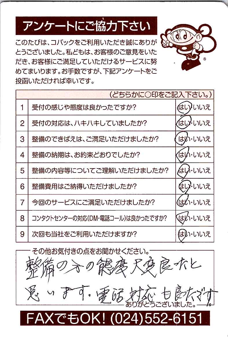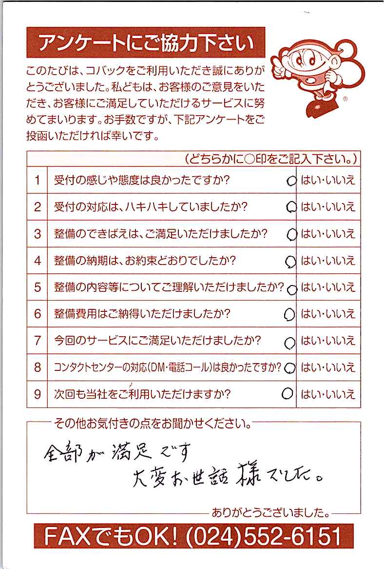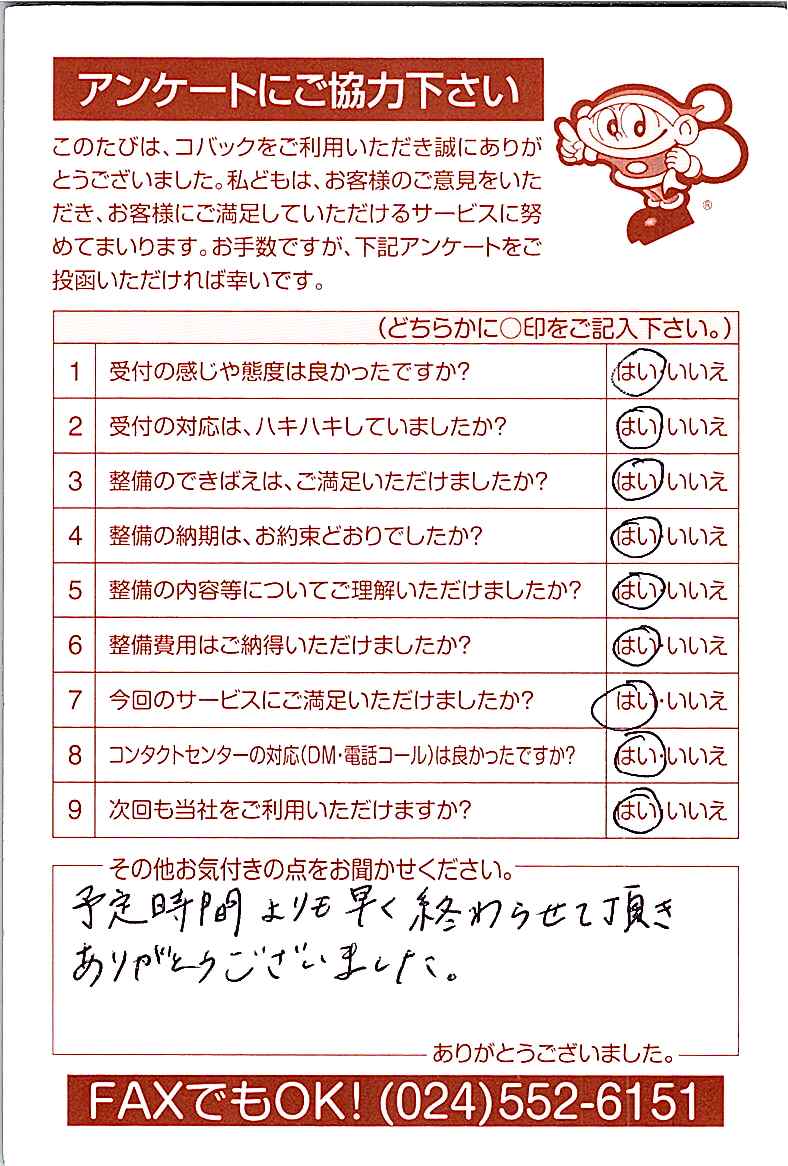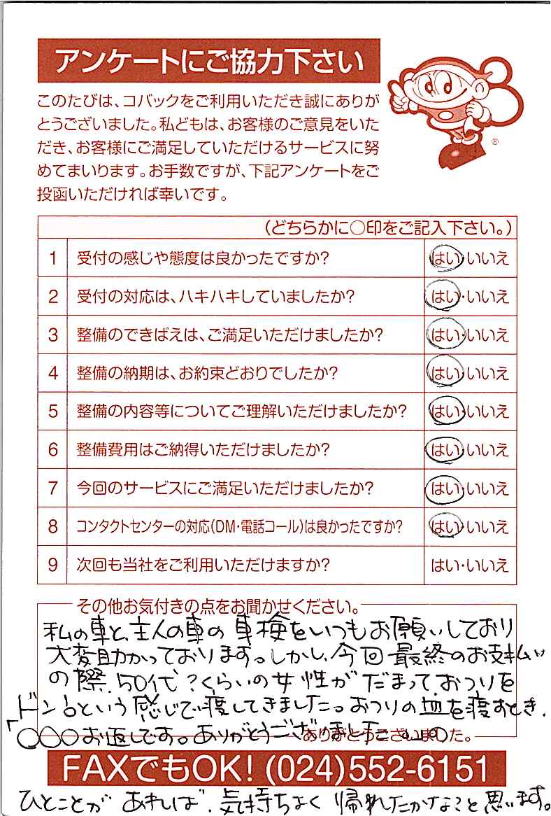 車検のコバック各店をご利用後には、ぜひアンケートのご協力をよろしくお願いいたします。