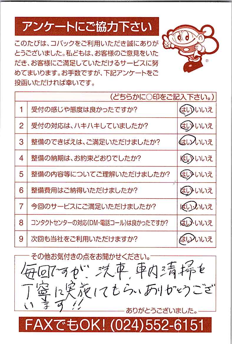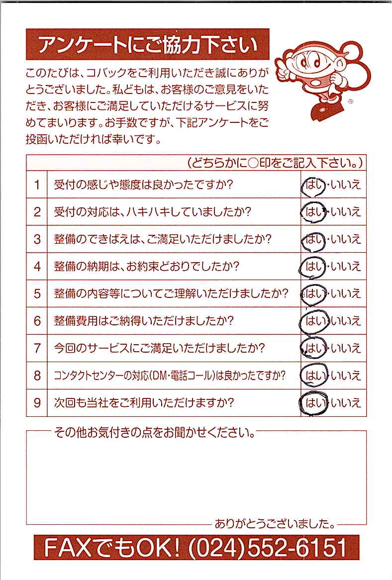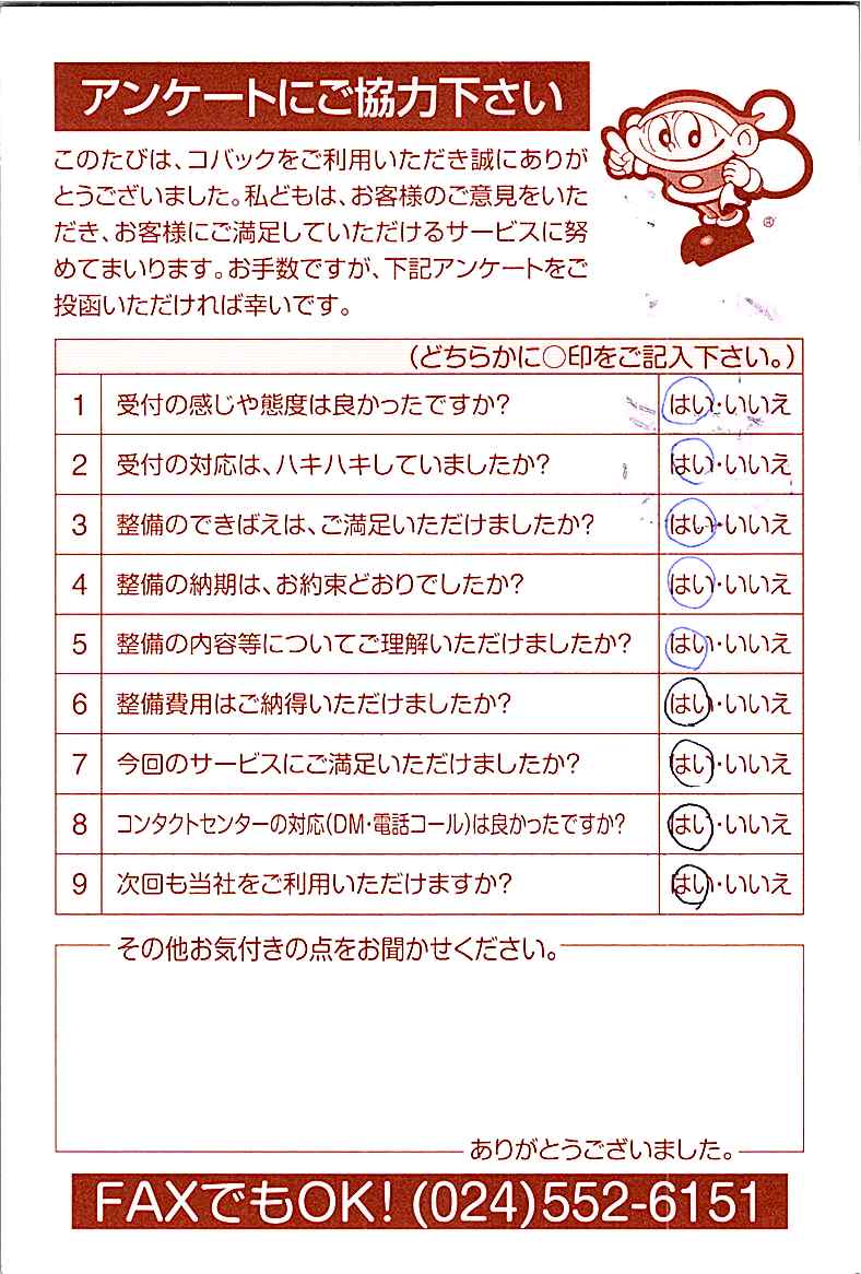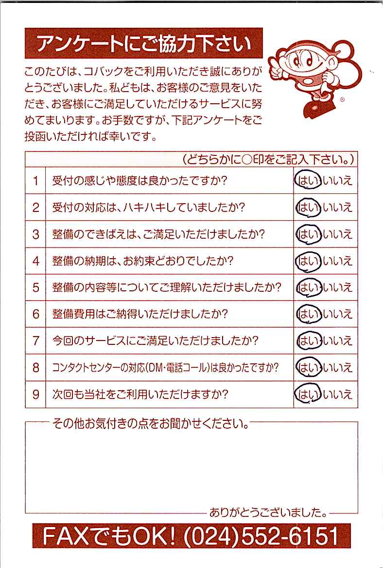 車検のコバック各店をご利用後には、ぜひアンケートのご協力をよろしくお願いいたします。