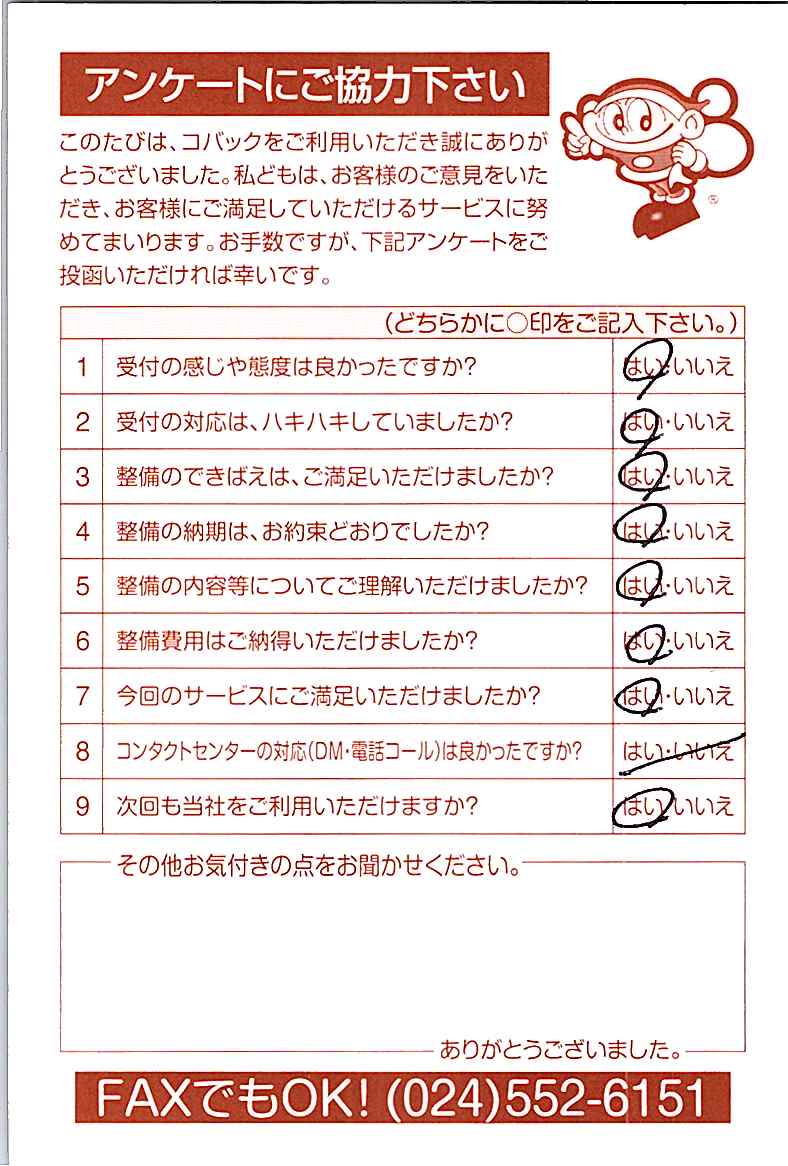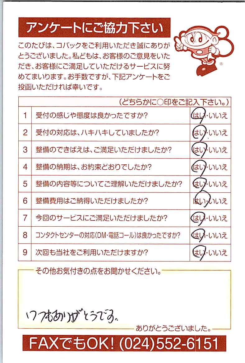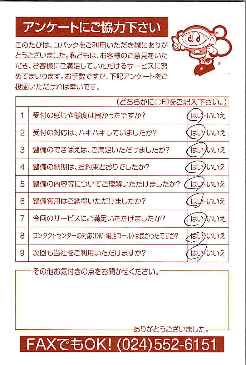 車検のコバック各店をご利用後には、ぜひアンケートのご協力をよろしくお願いいたします。