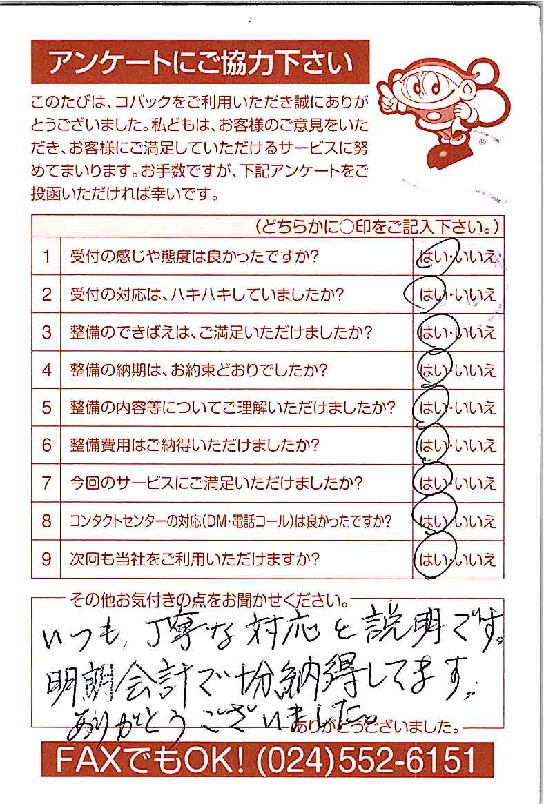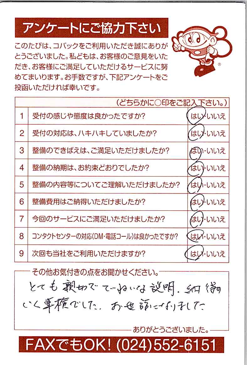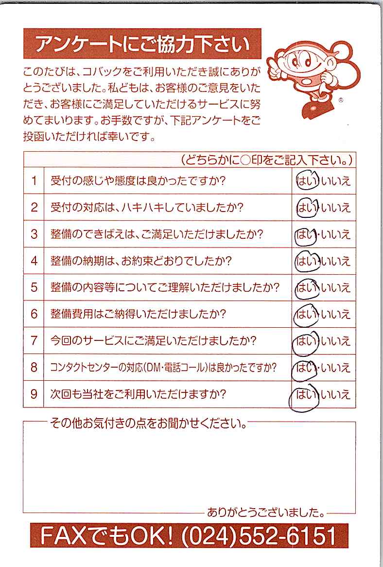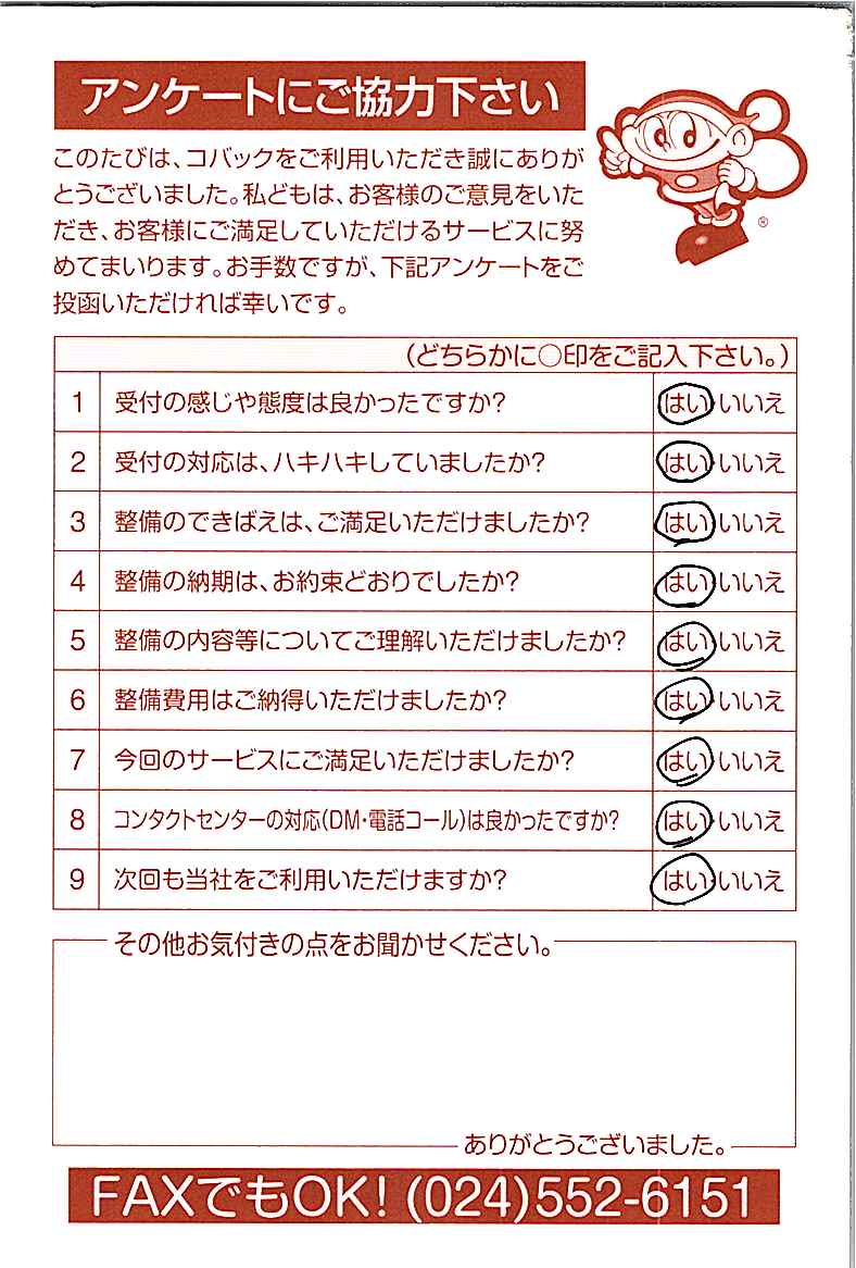 車検のコバック各店をご利用後には、ぜひアンケートのご協力をよろしくお願いいたします。