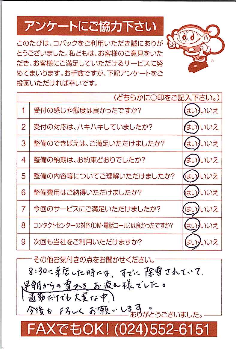 車検のコバック各店をご利用後には、ぜひアンケートのご協力をよろしくお願いいたします。